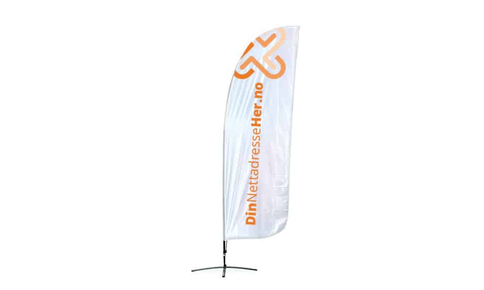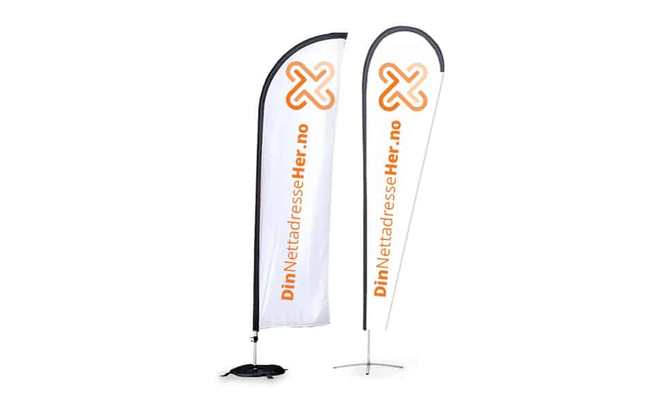 Flaggene egner seg like godt ute som inne, og kan plasseres på alt fra asfalt og gress til sand og snø. De fungerer utmerket ved messer, arrangementer eller utenfor butikken for å fange oppmerksomhet. Du kan velge blant ulike størrelser, former og baser, slik at du finner akkurat den varianten som passer dine behov. Vi tilbyr flagg i høyder fra 2,5 til 5 meter.
