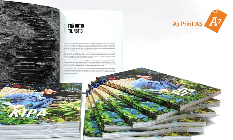 Å skrive en bok er en grundig prosess, og resultatet fortjener et uttrykk som står i stil. Vi anbefaler at det legges ned ressurser i både design og materialer. A7 kan produsere i flere formater og papirkvaliteter. Vi kan også foliere omslaget (matt-, gloss- eller skin-folie) og utføre kontur-skjæring. Den mest vanlige innbindingen er limfrest softcover, men du kan også velge stift, spiral eller coil.