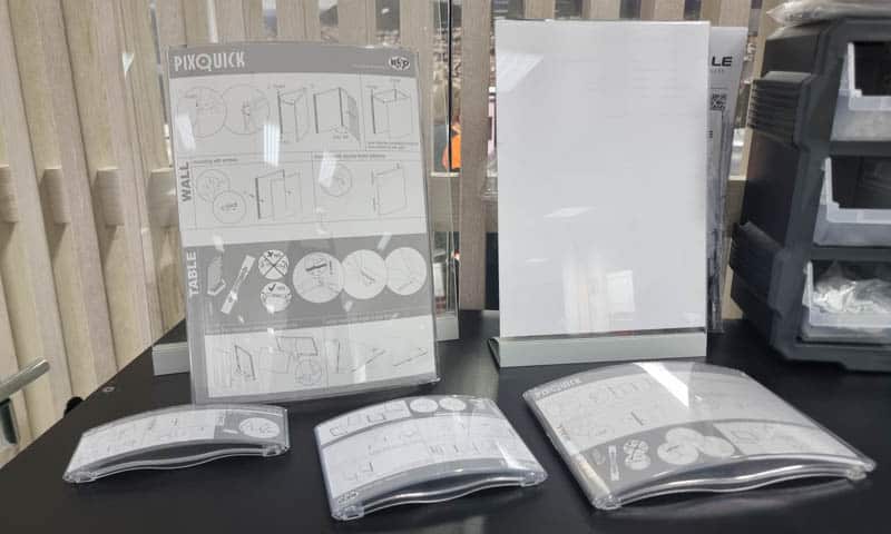 Ofte brukte materialer er aluminium, akryl, plast, tre eller stål – velg